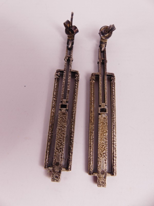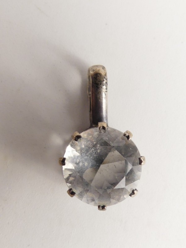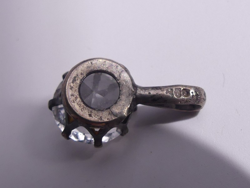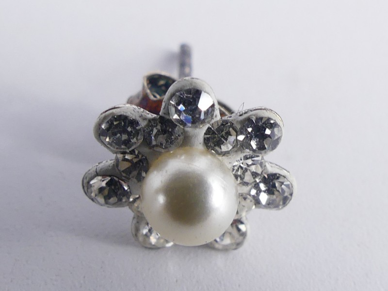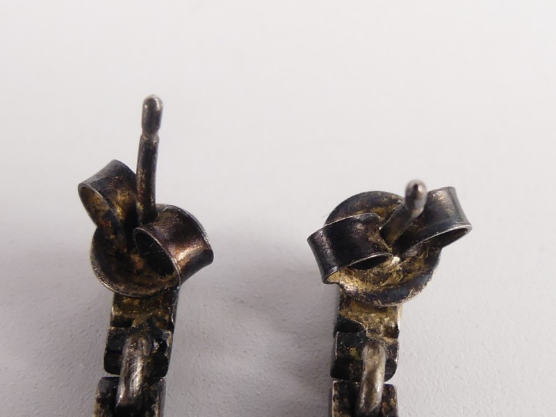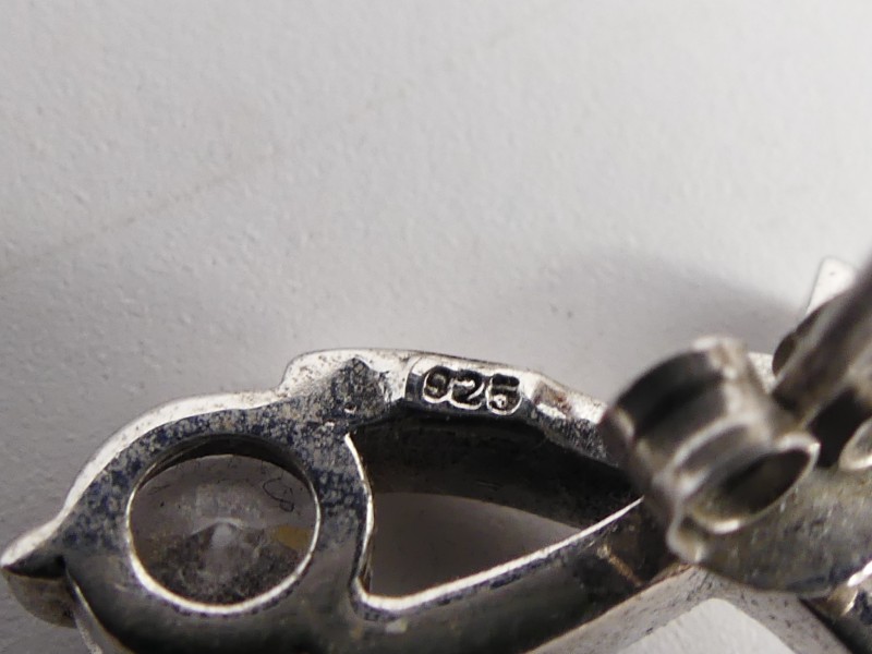 Lot bestaat uit 5 paar vintage 925 zilveren oorbellen en 1 hangen met een grote transparante steenof glas. Alle juwelen zijn in een andere stijl gemaakt.