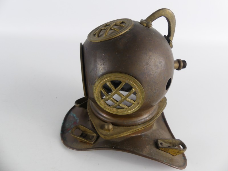 Dit is een miniatuur duikhelm, vaak gebruikt als decoratie in een nautische of vintage stijl.