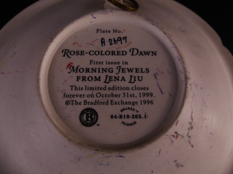Set van vier porseleinen wandborden uit de reeks "Morning Jewels" van Lena Liu, uitgegeven door The Bradford Exchange.
