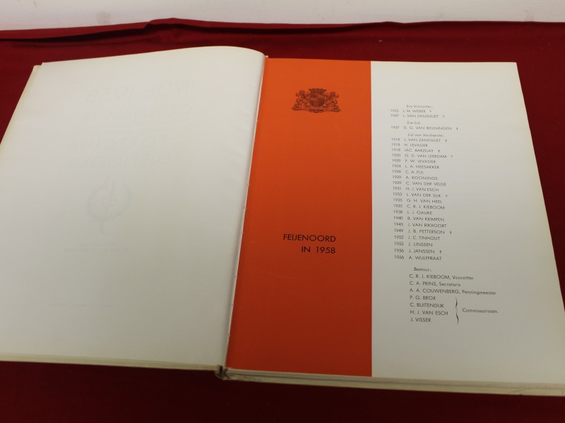 Boek 'Sportclub Feijenoord (1908-1958)'. Ook bekend als Feijenoord's gedenkboek 1908-1958.