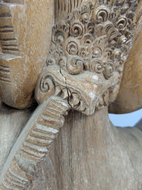 Prachtig handgesneden houten beeld uit Bali, voorstellend Rama en Sita uit het Ramayana. Het beeld is rijk gedetailleerd, met verfijnde gezichtsuitdrukkingen, sierlijke hoofdtooien en traditioneel Balinees snijwerk rondom de kleding en ornamenten.