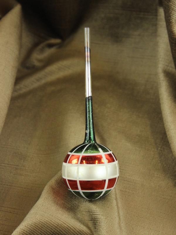 Eén van de ornamenten – de langgerekte bal met slanke top – is voorzien van geen ophangsysteem. Door de dunne bovenkant lijkt dit stuk niet bedoeld als piek en kan het niet over een tak worden geschoven; een ophanghaakje dient nog bevestigd te worden voor gebruik. De overige ornamenten zijn uitgevoerd met een klassiek metalen ophangoogje.