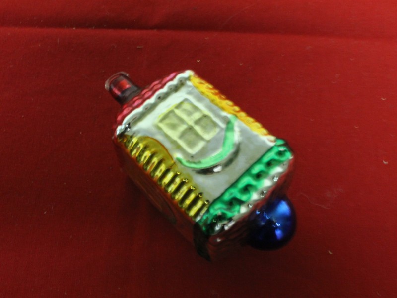 Set van 5 vintage kerstornamenten van het Belgische merk Ajeko. Deze ornamenten zijn herkenbaar aan het kenmerkende glazen oogje waaraan ze worden opgehangen. Ajeko was een glasblazerij in Hemiksem, opgericht door de Tsjechische glasblazer Alfred Jecelin. De kerstballen werden met de hand geblazen en beschilderd. Met o.a. een aardbei, lampion en huisje.
