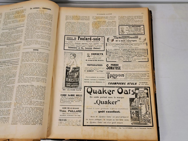 Dit lot bestaat uit twee ingebonden boeken. Het gaat om het tijdschrift Le Patriote Illustré. De jaargangen zijn 1900 en 1901. Het betreft een Franstalig familieblad. Uitgegeven in Brussel, België.De boeken zijn rijk geïllustreerd. Ze bevatten prenten, foto’s en advertenties. Onderwerpen zijn nieuws, cultuur en maatschappij. Ook koninklijke en historische thema’s komen voor. De banden zijn uitgevoerd in donker leer.