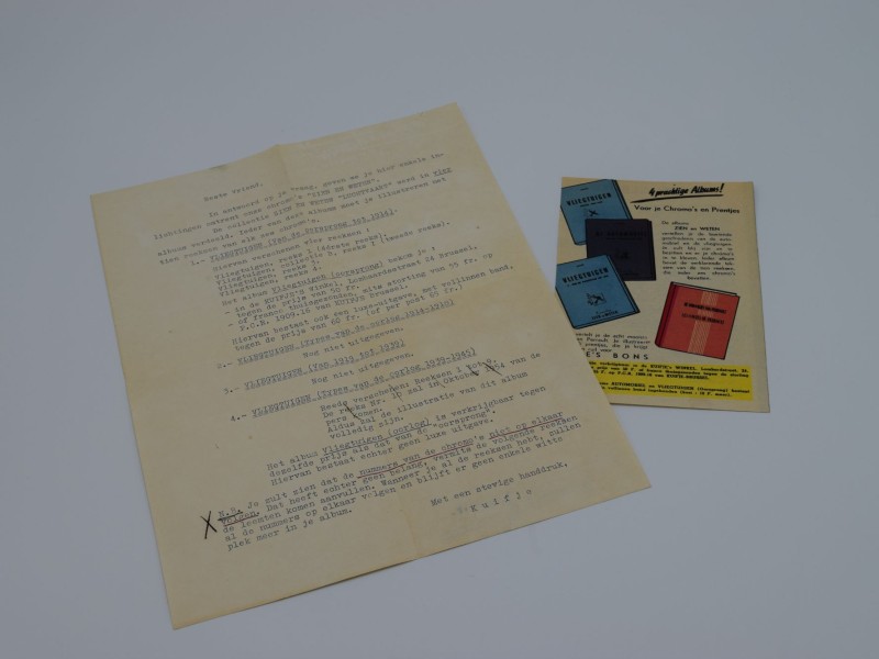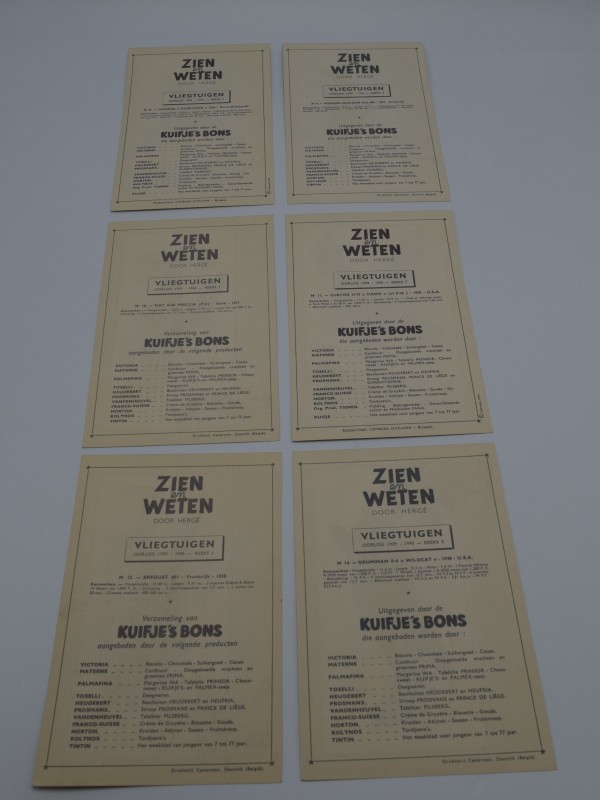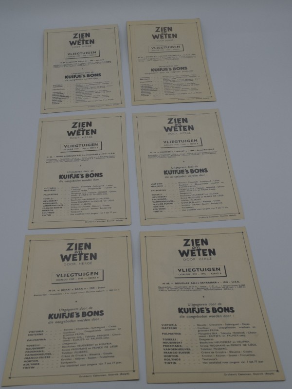 Dit zijn chromo's of plaatjesalbums die werden verzameld met bonnen. De reeks is gerelateerd aan het werk van de Belgische striptekenaar Hergé, de maker van Kuifje. Het mapje bevat educatieve plaatjes over vliegtuigen en zeppelins.