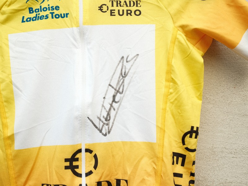 Dit gesigneerde truitje verwijst naar haar schitterende zege in Gent-Wevelgem.