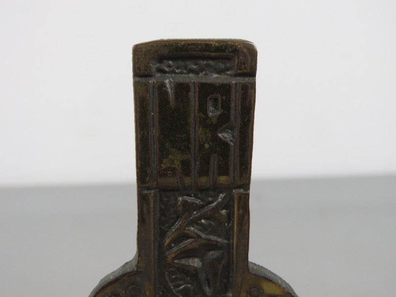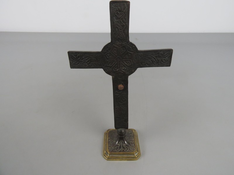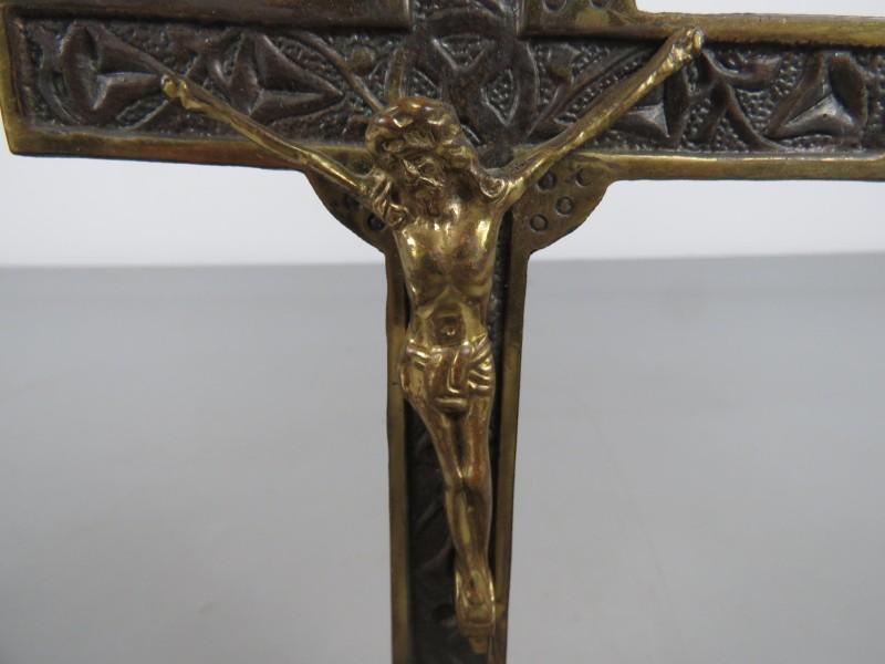 Messing beeld van Jezus aan een kruis. Gemaakt door Inri.