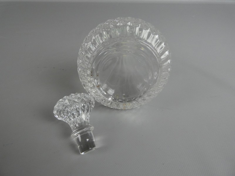 Dit elegante stuk is gemaakt van Genuine Lead Crystal (echt loodkristal, met meer dan 24% loodoxide), wat zorgt voor een ongeëvenaarde schittering en helderheid. De karaf heeft een klassiek, bolvormig design met een schitterend diamantpatroon en een bijpassende, gefacetteerde stop.