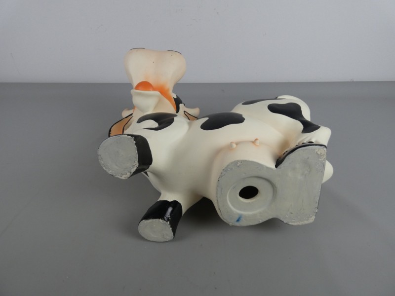 Deze grappige spaarpot heeft de vorm van een vrolijke, cartoonachtige koe.