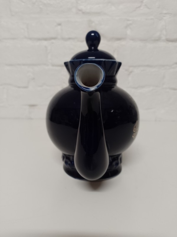 Porseleinen theepot in donker kobaltblauw met goud decor