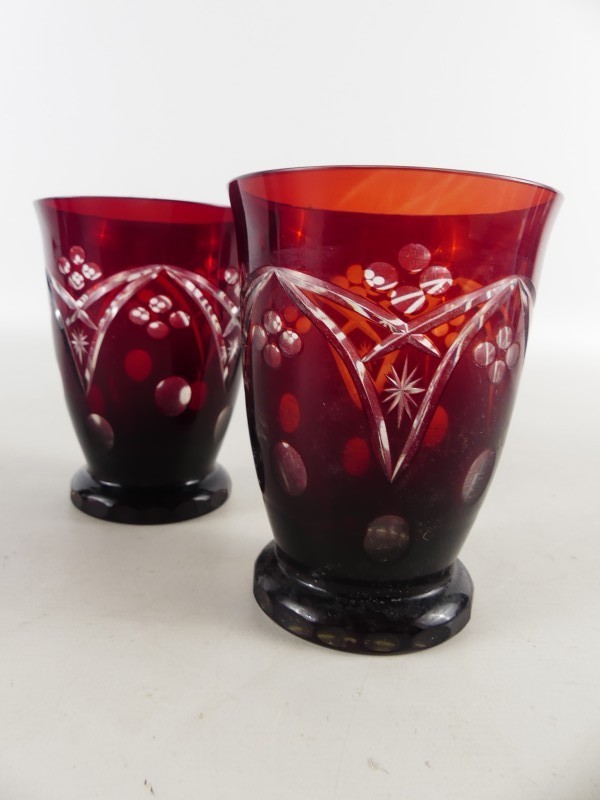 Set Van 12 Glazen - Robijnrood Geslepen Glas