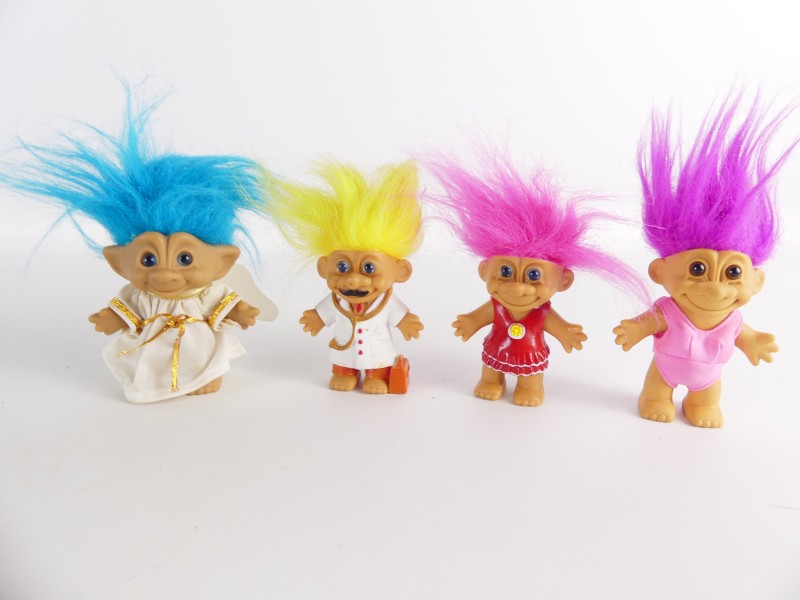Trollenpoppen zijn geïnspireerd op trollen uit de folklore, maar zijn ontworpen