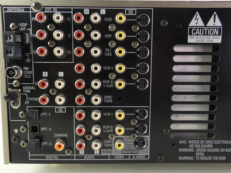 - Audioformaten: De receiver ondersteunt de gangbare surround sound-formaten uit die tijd, zoals Dolby Digital en DTS.