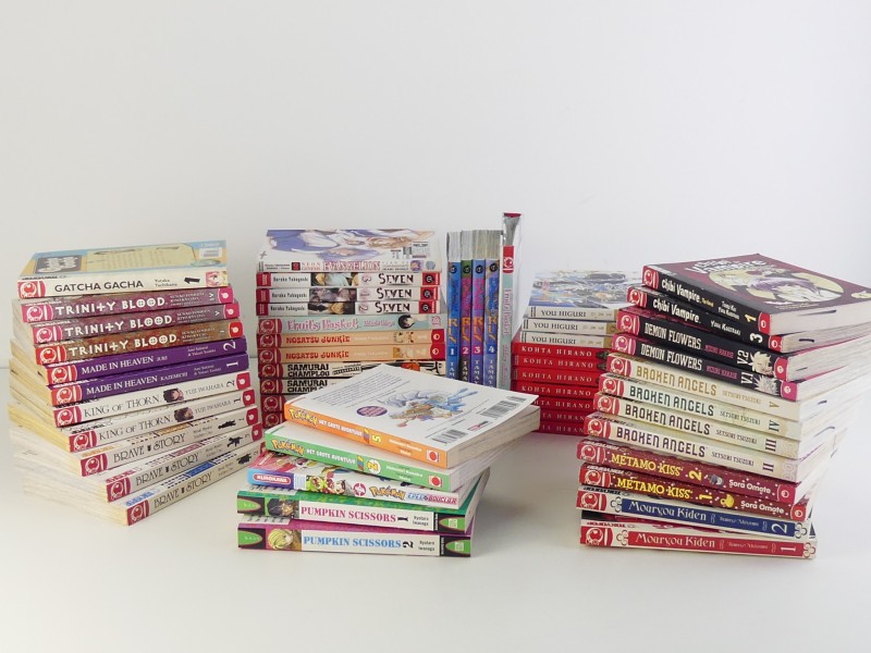 Lot van 54 manga uit verschillende series (Japansz stripjes) in het Engels, Frans en Nederlands.