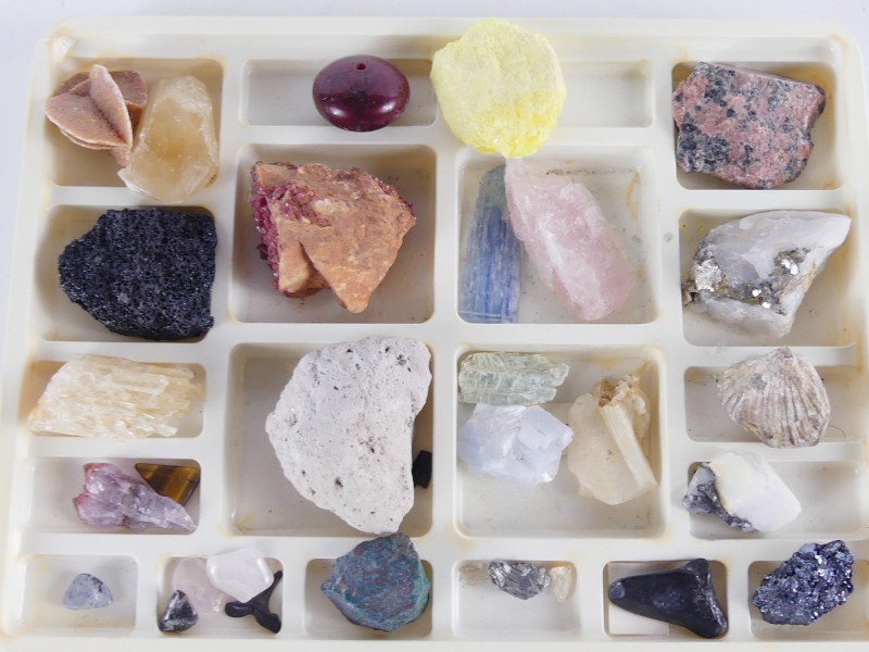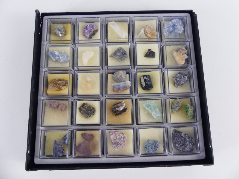 Uitgebreide collectie van natuur- en mineraalstenen. Er zitten ook enkele fossielen en vulkanisch gesteente bij, ideaal om je collectie mee uit te breiden of er een te beginnen. Totaalgewicht: 8,2kg.