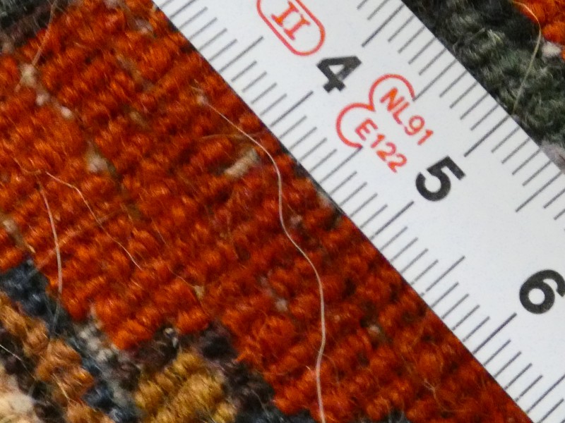 Zoals te zien is op de foto met liniaal, is het aantal knopen vrij hoog,