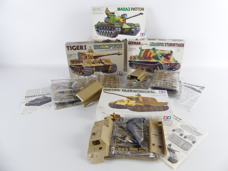 Lot van 4 modelbauwtanks van het merk Tamiya