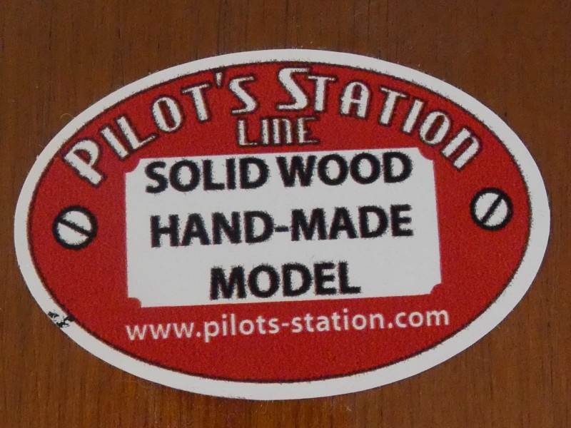 Dit handgemaakte model is geplaatst op een houten voet met originele sticker “Pilot’s Station Line – Solid Wood Hand-Made Model”. Het model is prachtig afgewerkt en voorzien van realistische en nauwkeurige details, wat het tot een aantrekkelijk verzamelobject maakt voor luchtvaartliefhebbers en verzamelaars.