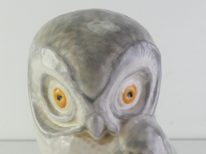 Vintage uilbeeld van keramiek of porselein, gemerkt onderaan met Bordallo Pinheiro, Portugal.