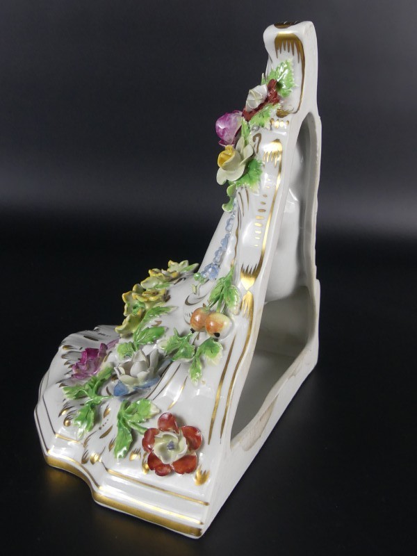 met stempel van Dresden en genummerd met '72243' - Schaal op voet met bloemen en jongen tegen boomstam