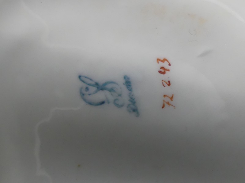 handgeschilderd, enkele bloemblaadjes afgebroken, enkele blaadjes beschadigd
