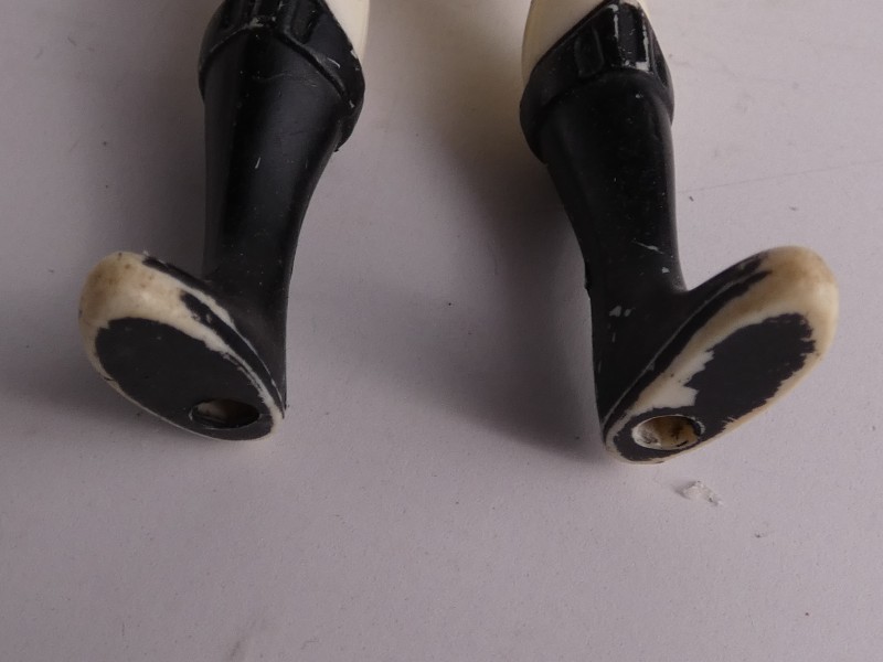 In bespeelde staat, lakschade aan haar, handen, laarzen achteraan en rug.