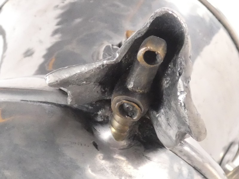 De ketel is gevormd of geslagen waardoor de lichte oneffenheden