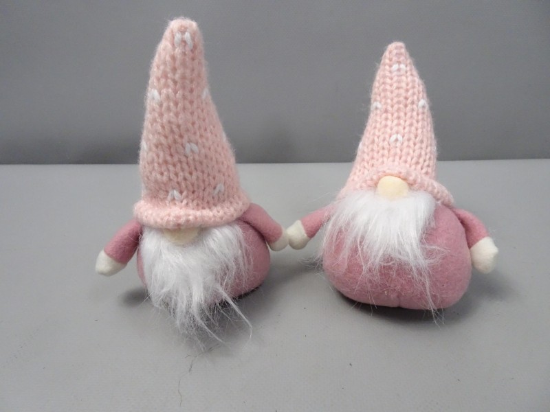 2 Kerstman kabouter met roze gebreide muts – 17 cm kerstdecoratie