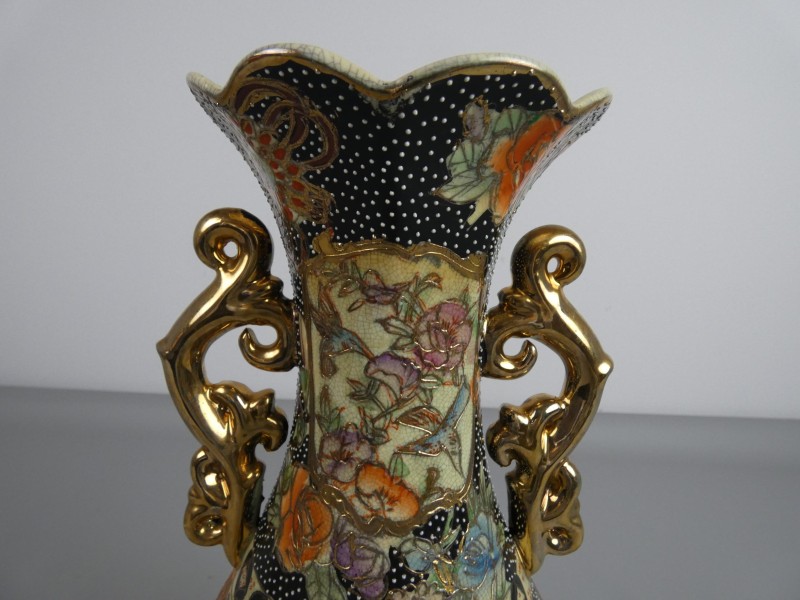 Decoratief Pronkstuk: Zeer fraaie vaas in de stijl van Satsuma-aardewerk met een rijk gedecoreerd en kleurrijk oppervlak.