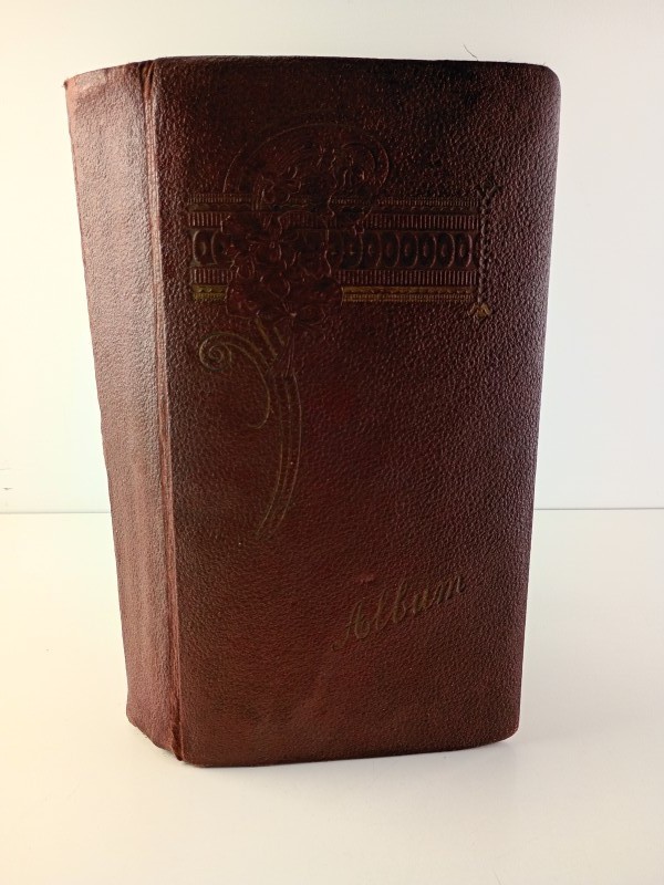 Omslag: roodbruin kunstleer met goud- en blinddruk “Album”