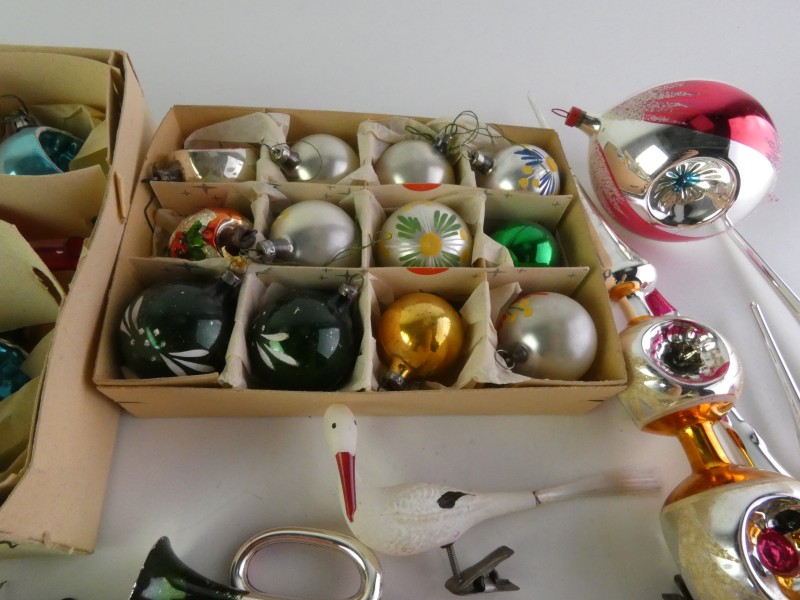 Samengesteld lot van twee doosjes gevuld met kerstballen,