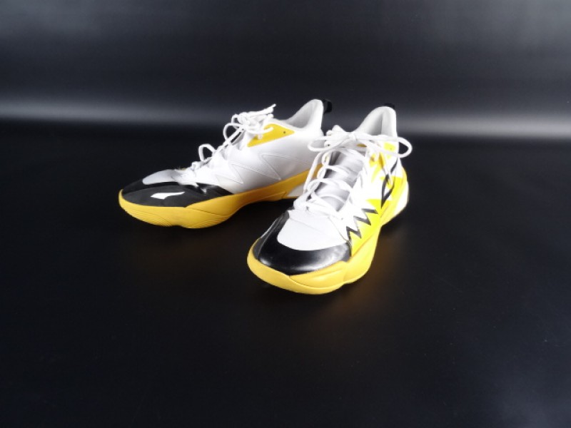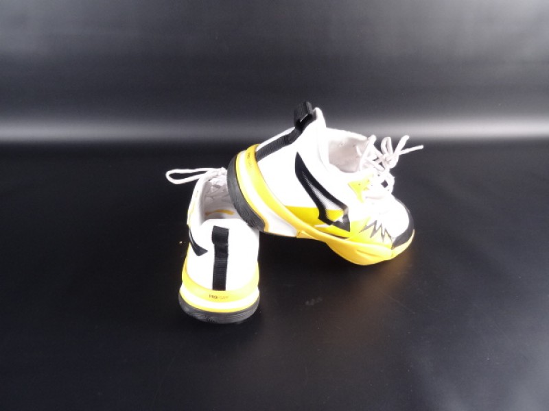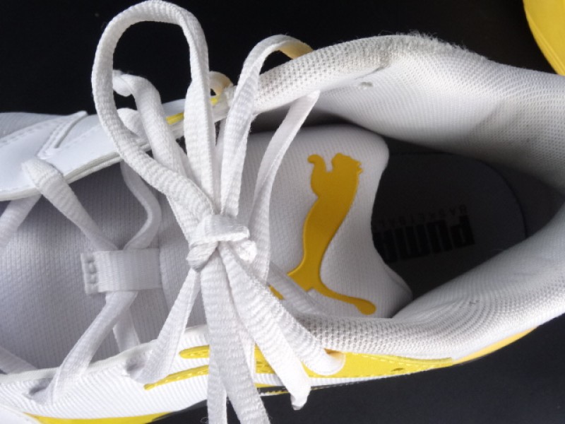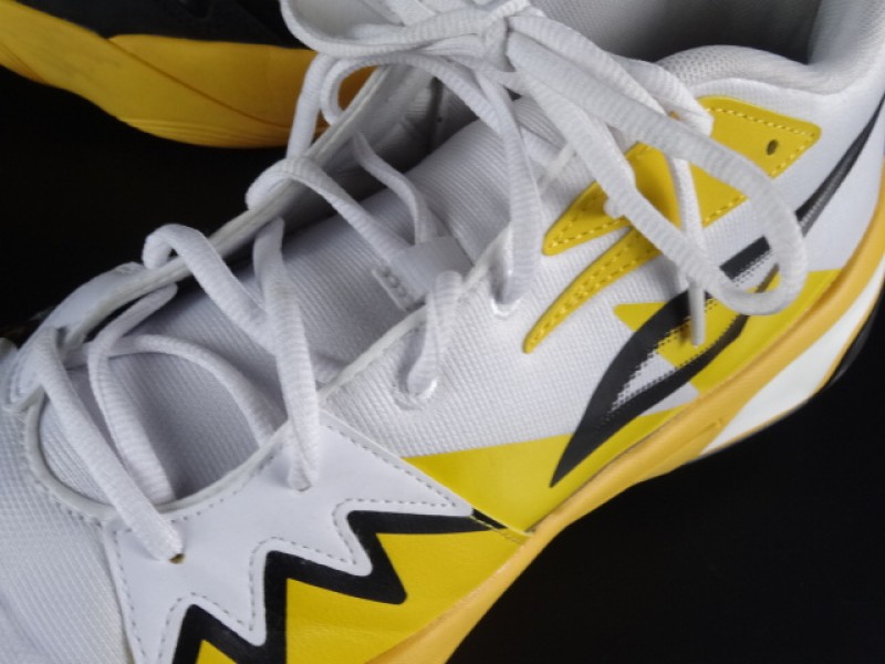 De schoenen zijn in wit, geel en zwart uitgevoerd.