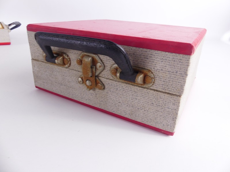 Lot van 3 vintage platenkoffertjes en 3 mapjes speciaal ontworpen voor het opbergen en beschermen van 7'' singles.
