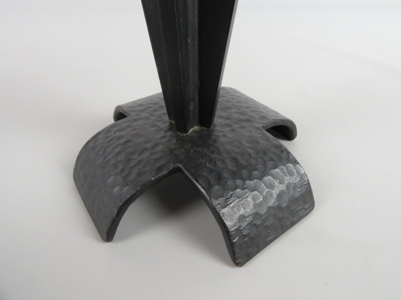 Grote gietijzeren kandelaar voor een brede kaars.
