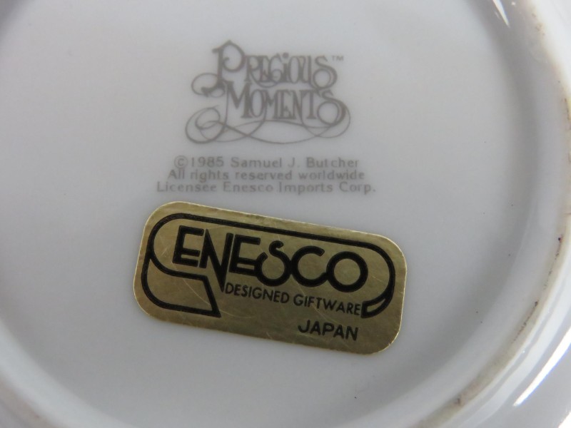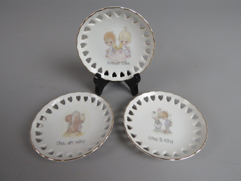 3 kleine porseleinen sierborden gemaakt door Enesco in Japan. Design Samuel J. Butcher 1985.