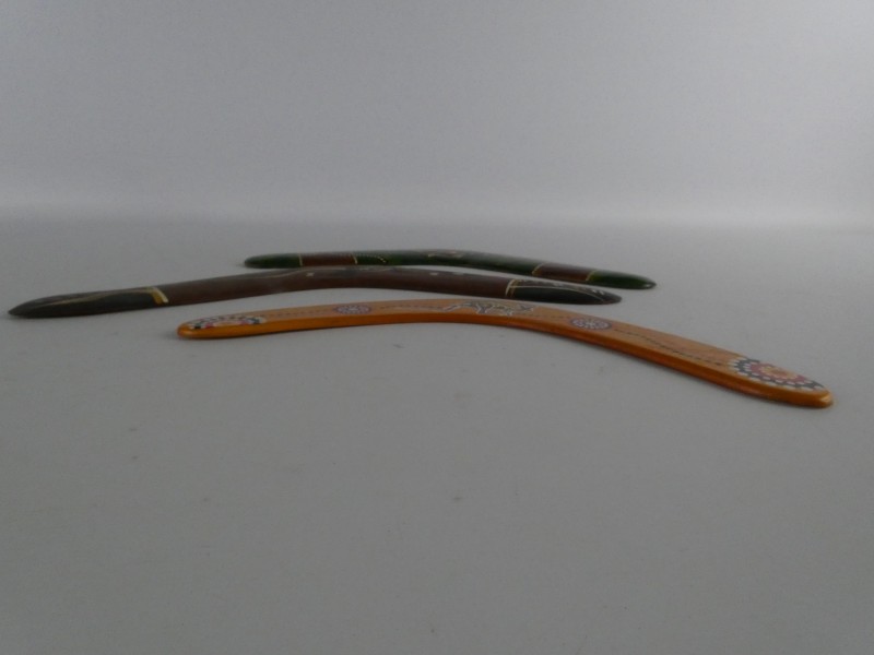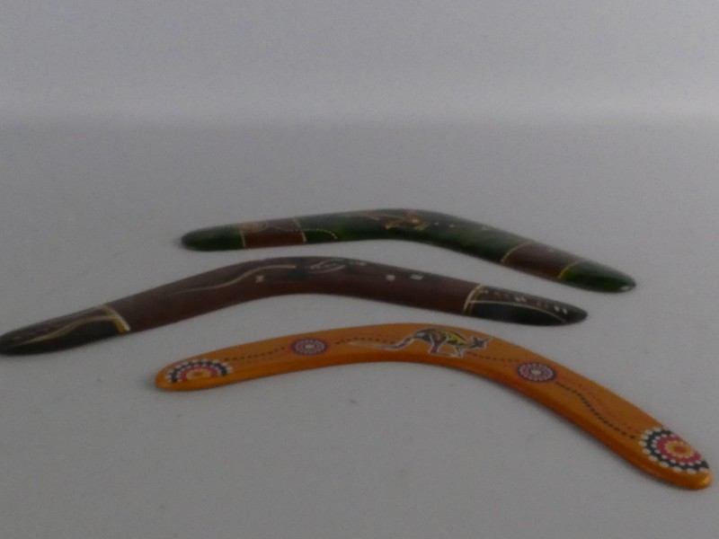 Drie boemerangs, een traditioneel werpwerktuig dat zijn oorsprong vindt bij