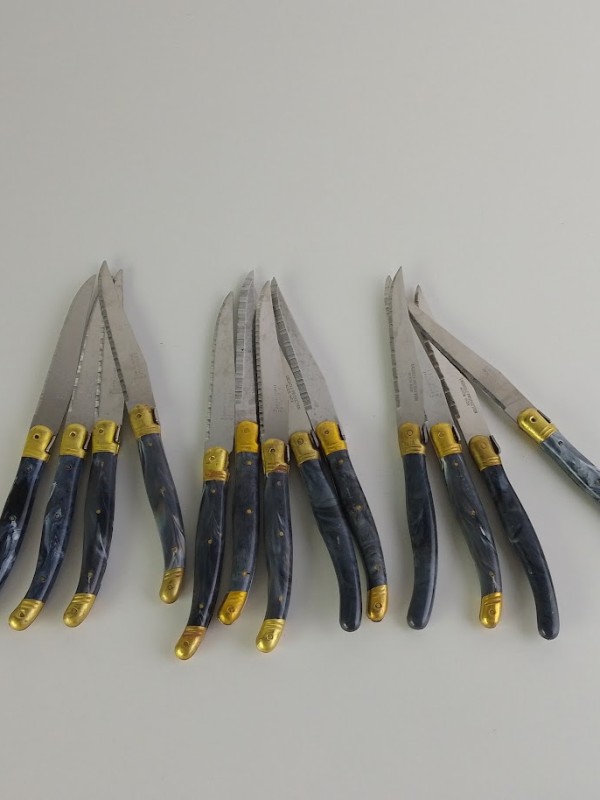 ***17 Laguiole messen: Klassiek Laguiole design, handvat met blauwzwart marmerpatroon,