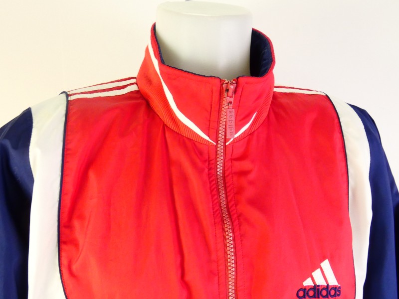 Vintage Adidas windjack – Rood/Marineblauw – Unisex (maat 5: M)
