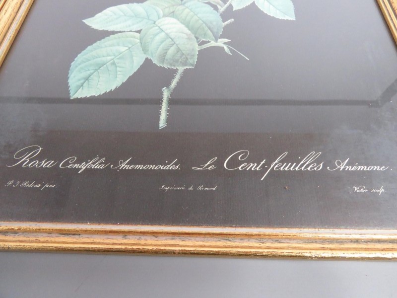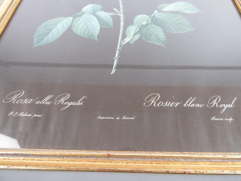 4 gedrukte prenten van rozen. 4 verschillende rozen. P.J. Redouté Pina.