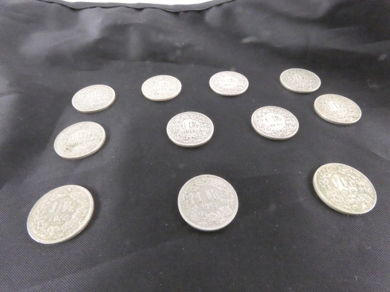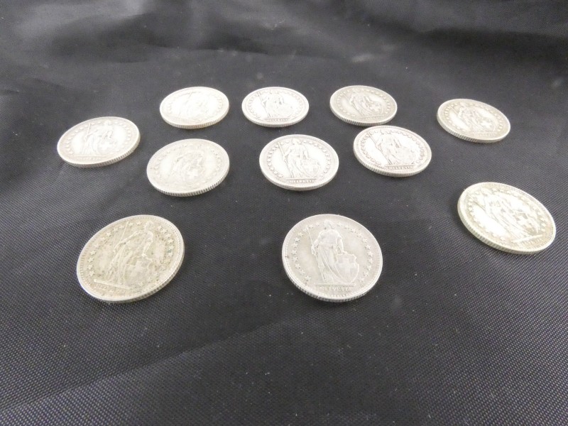 11 zilveren Zwitserse ("Confoederatio Helvetica") francs.
