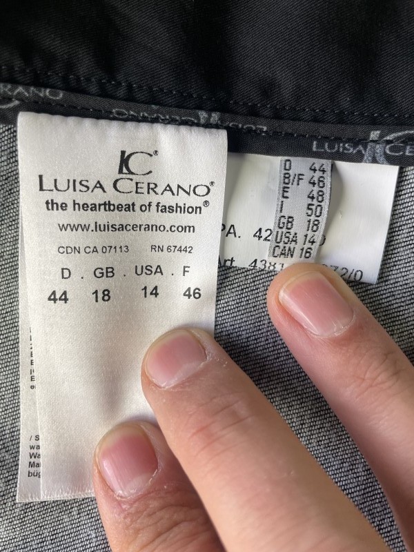 Afmetingen: L: 54,5cm, schouderbreedte: 44cm, mouw: 56,5cm.