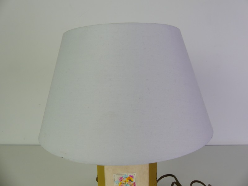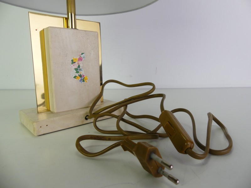 De lamp is volledig werkend. Ze vertoont lichte gebruikssporen aan de kap en het messing, en enkele kleine chipjes aan de marmeren voet — maar blijft een decoratieve en karaktervolle eyecatcher.