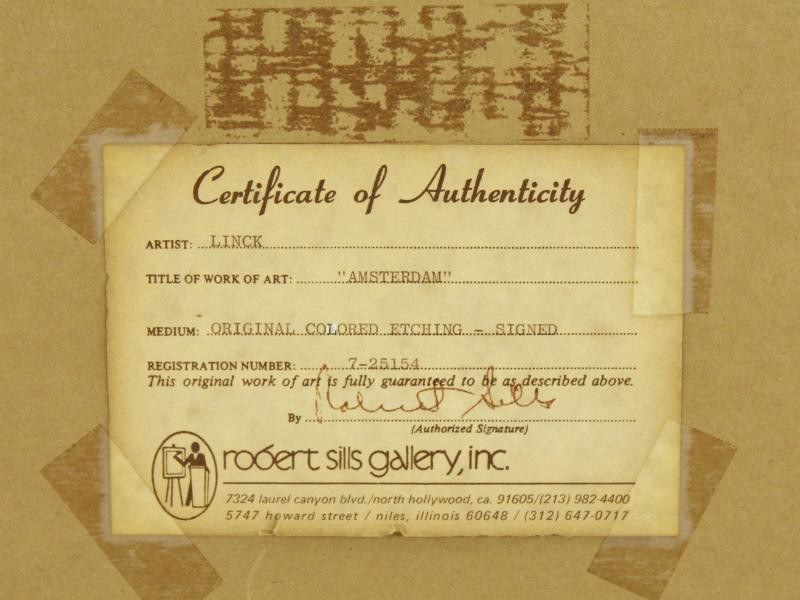 - Onderaan in potlood beschreven "Amsterdam" en gesigneerd met het pseudoniem 'Linck'.