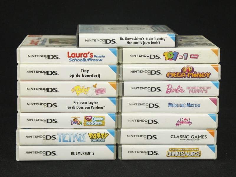 Verzameling Nintendo DS spellen. Deze games zijn ontwikkeld voor het draagbare Nintendo DS-systeem, bekend om zijn dubbele scherm en touchscreenbediening die een unieke spelervaring biedt. De collectie bevat uiteenlopende genres, van actie en avontuur tot puzzel, sport en simulatie.