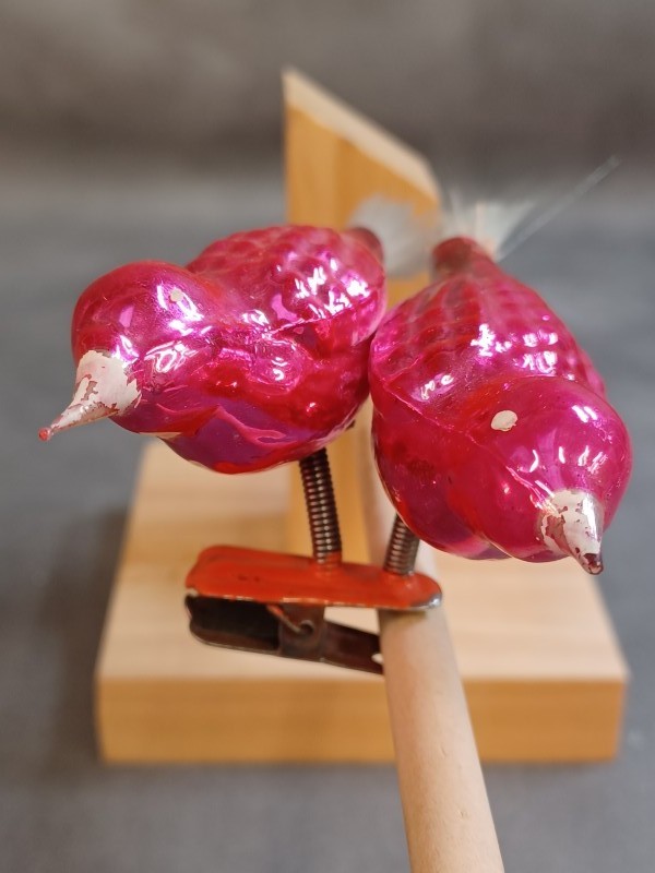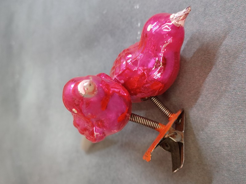 - De kleuren zijn goed bewaard gebleven: 2 fel roze, 1 blauwe, 1 zilver/witte, 1 rood/zilver en 1 multicolor vogel.