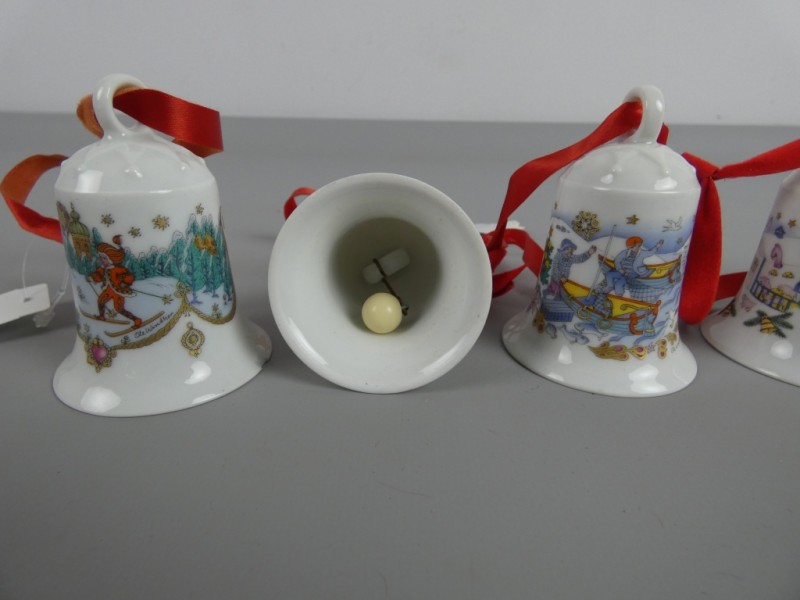 Elk belletje is versierd met een kleurrijk tafereel, mogelijk met een kerst- of kinderboekenthema, zoals te zien aan de illustraties.