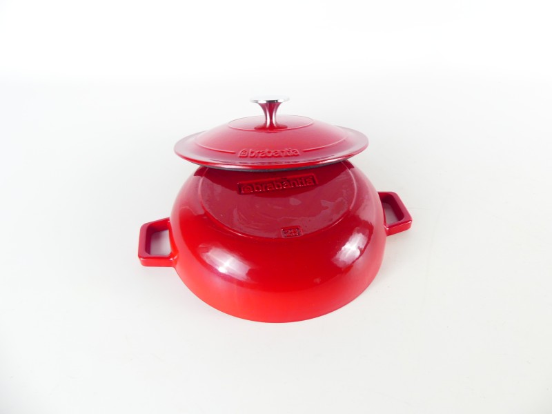 1- Ronde rode gietijzeren pan met deksel van Brabantia (25).