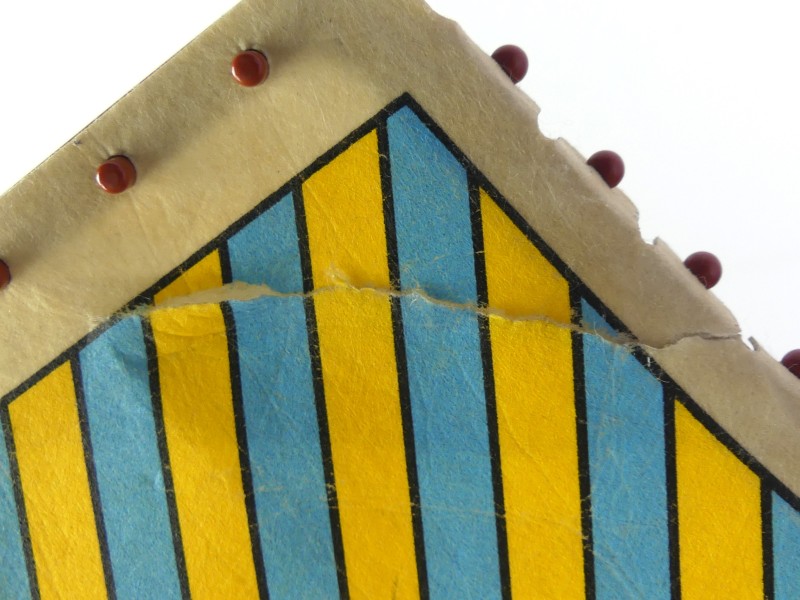 In bespeelde staat. Een stuk van de ridder tent is gescheurd maar weer geplakt met plakband.