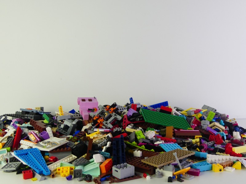 Een bonte mix van LEGO-stenen en onderdelen met een totaalgewicht van ca. 4.9 kg.