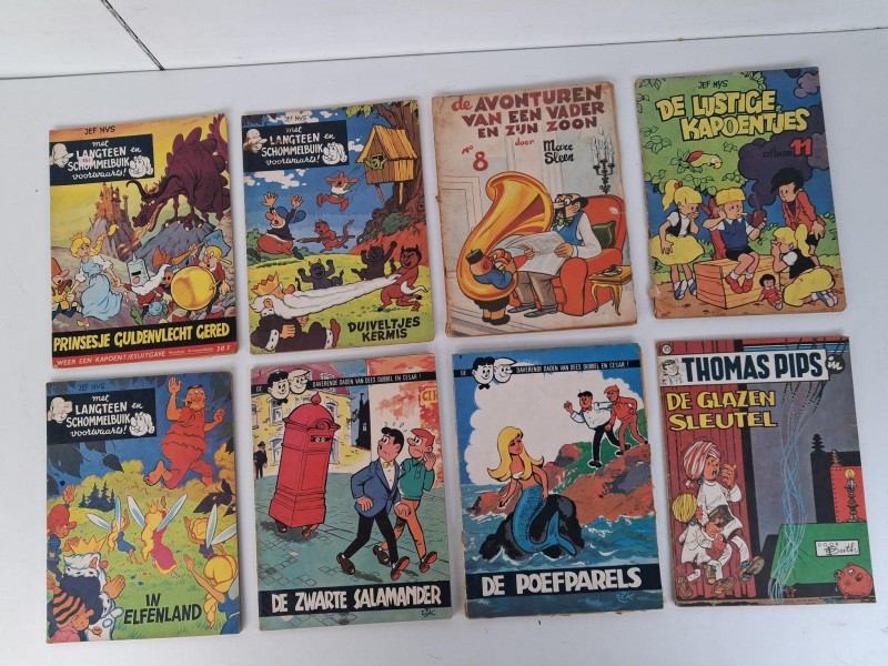 Deze verzameling stripboeken bevat vintage Vlaamse strips uit de jaren '60, waaronder klassiekers van bekende tekenaars: